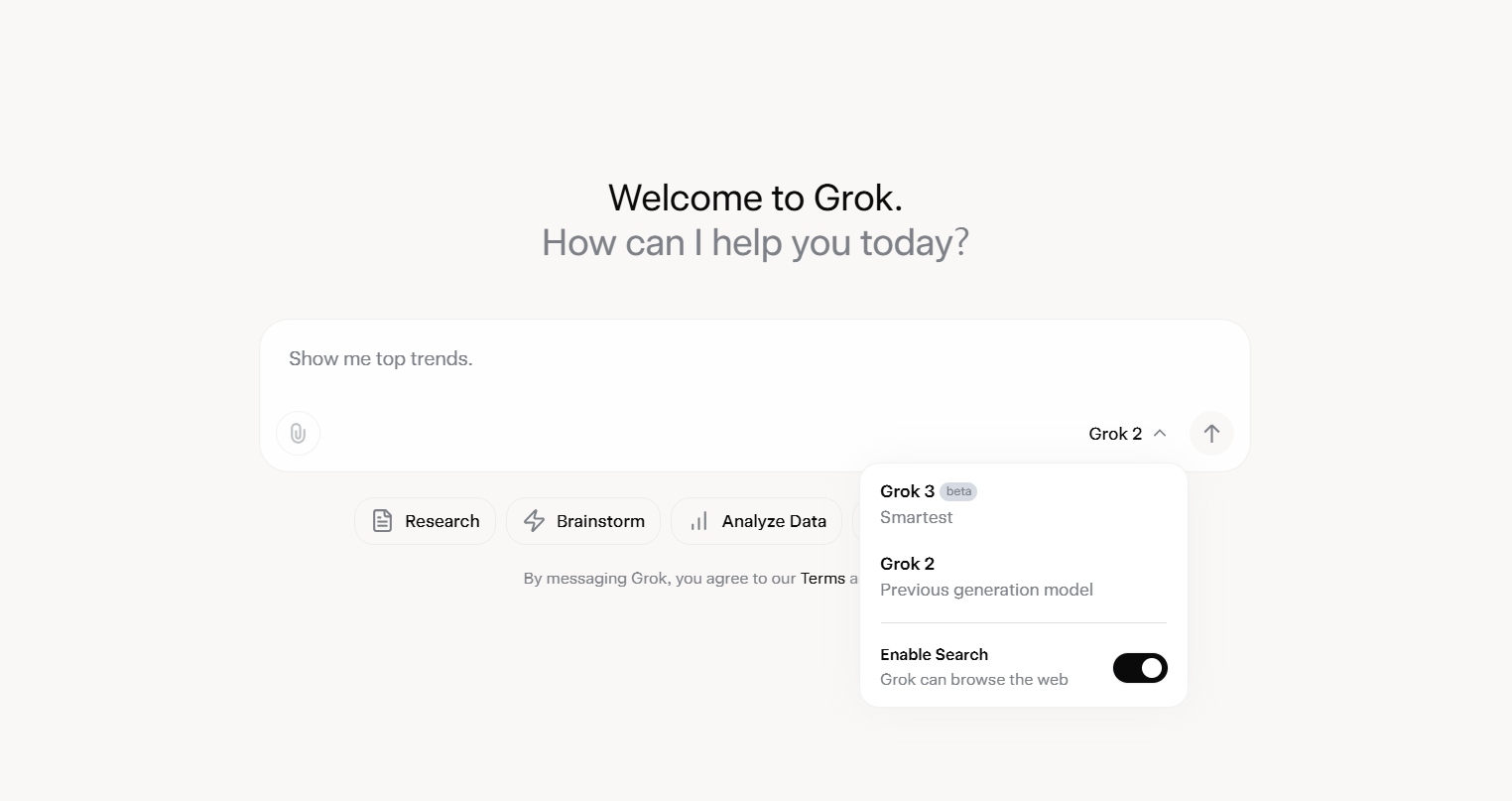 - 채팅 인터페이스에서 Grok-3와 대화
