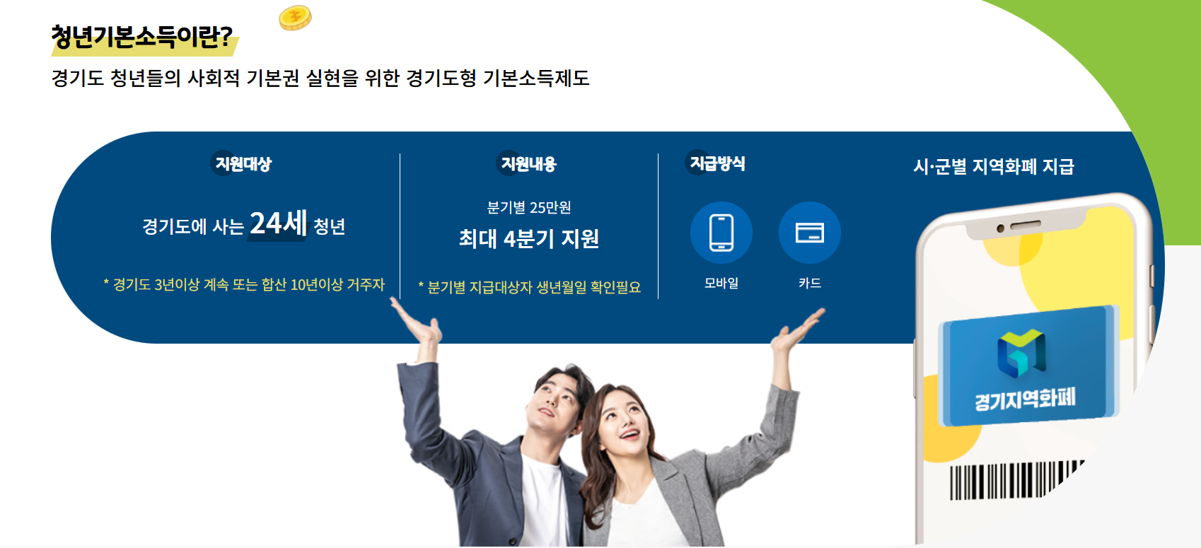 경기도 청년 기본소득은 경기도에 거주하는 청년들에게 분기별로 25만 원씩 지급하는 지원금입니다.