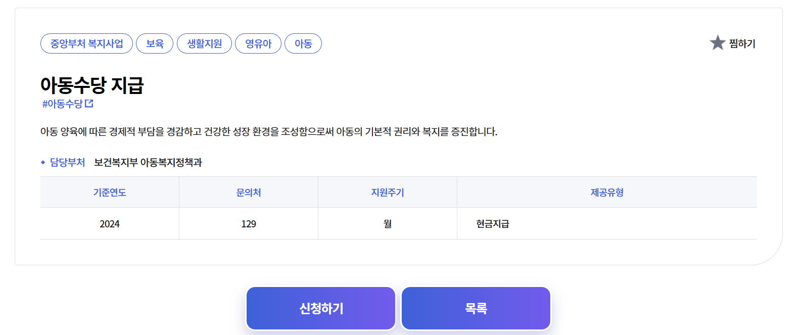 - 보조금24에서 아동수당 신청 메뉴 선택
