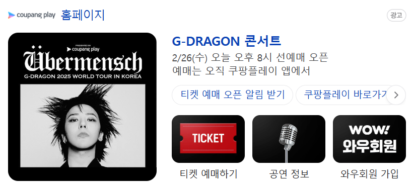 - 조건: G-DRAGON OFFICIAL MEMBERSHIP 가입 + 쿠팡 와우 회원